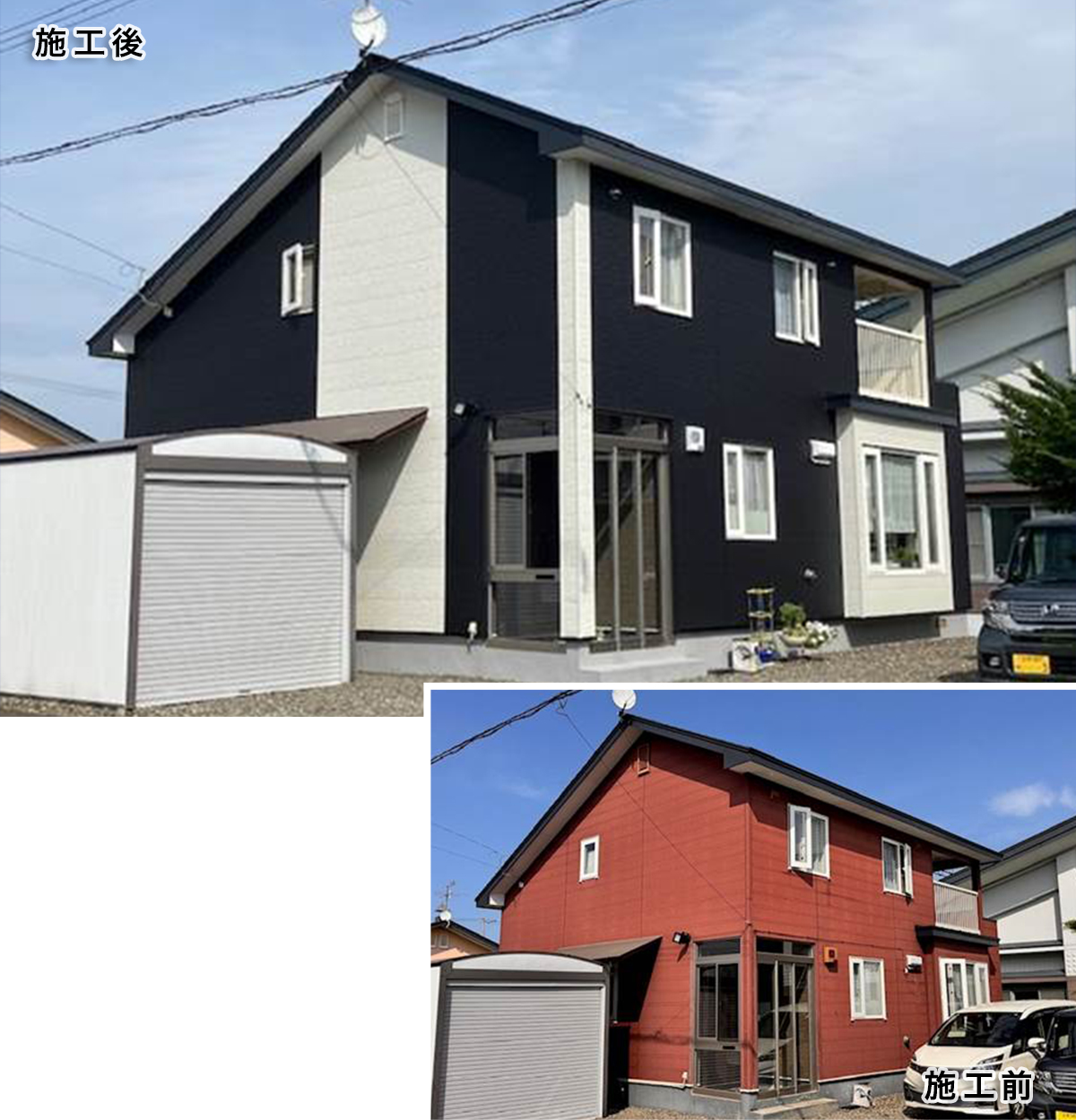 施工前は暖色系の外壁でしたが、今回は白と黒等のコントラストを効かせた貼り分けとしたことで都会的でスタイリッシュなファサードとなったと思います。